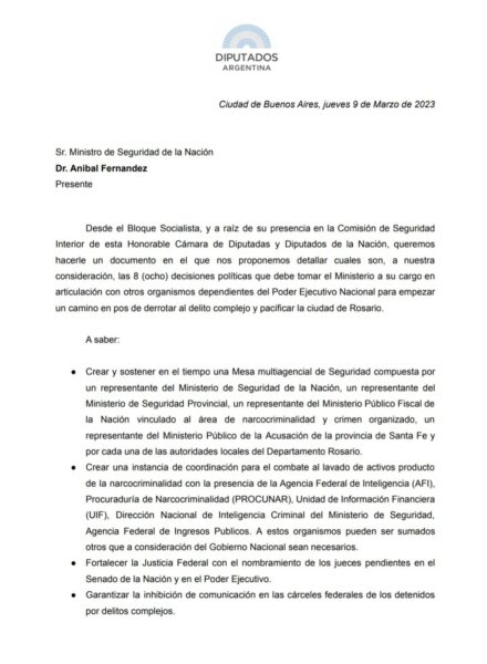 Desde nuestro Bloque entregamos al ministro un documento con ocho propuestas que consideramos fundamentales para terminar con la violencia en Rosario.